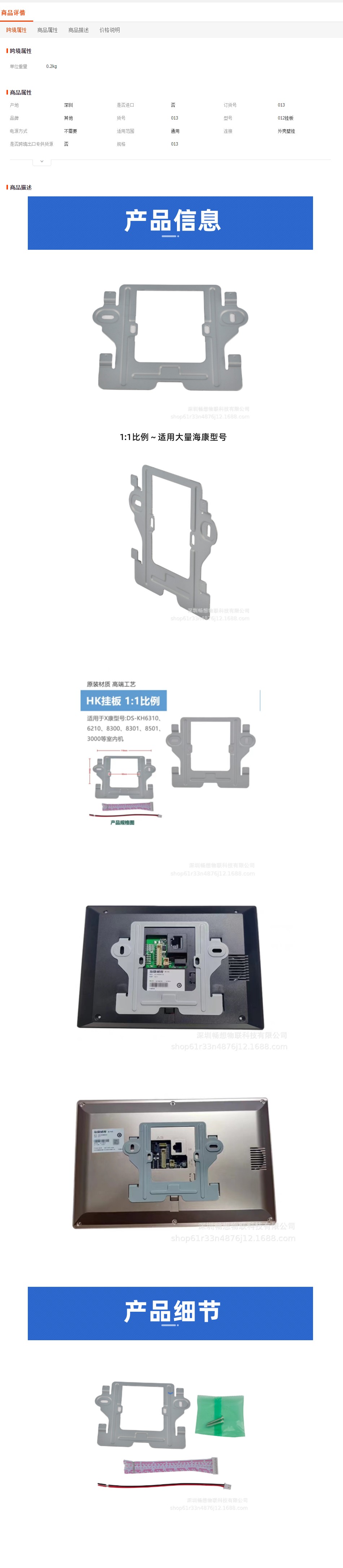HK6320可视对讲分机门铃挂板通用型HK挂板室内机挂架背板(含线)